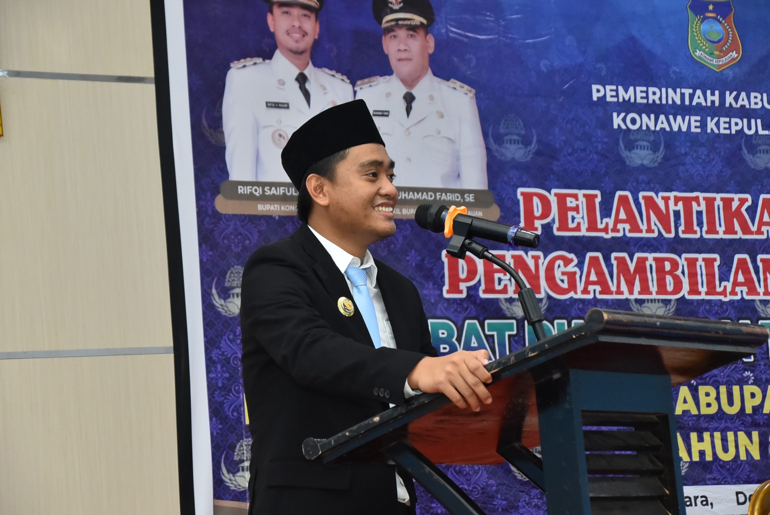 Pelantikan dan pengambilan sumpah jabatan dipimpin langsung oleh Bupati Konawe Kepulauan Rifqi Saifullah Razak, ST., dan dampingi oleh Sekretaris Daerah Ir. H. Cecep Trisnajayadi, M.M.,  Kepala. KPSDM  Umar, S.Pd., M.M., serta unsur Forkopimda, para asisten, staf ahli, kepala OPD, dan tamu undangan lainnya.