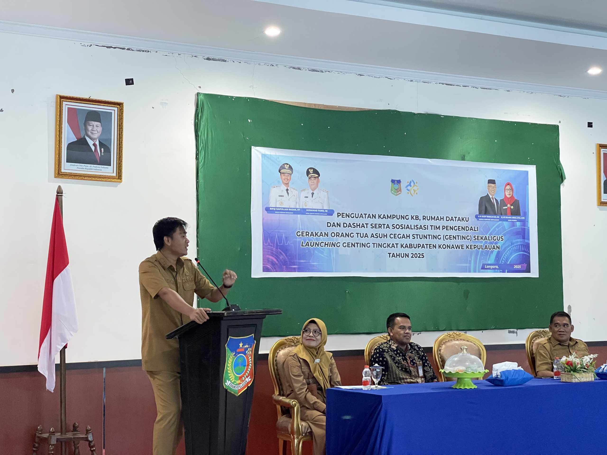Kegiatan yang berlangsung di salah satu aula pertemuan tersebut dihadiri langsung oleh Bupati Konawe Kepulauan Rifkqi Saifullah Razak, ST, Wakil Bupati Muhamad Farid, SE, Sekda Konkep, Ir. Cecep Trisnajayadi, MM, Sekretariat BKKBN Sultra, Kepala Dinas PPKBP3A, Ketua Tim Penggerak PKK konkep serta jajaran Pemerintah dan Forkopimda Konawe Kepulauan, Launching Genting menjadi tonggak penting dalam upaya pemerintah daerah menekan angka stunting di wilayah kepulauan.