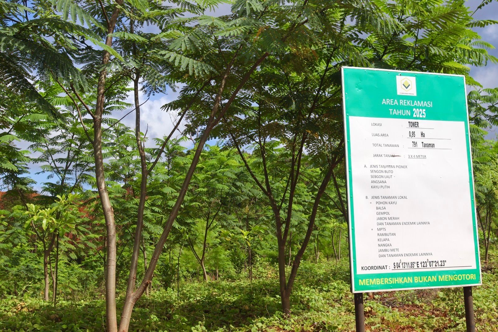 “Setiap kegiatan reklamasi ini, kami rancang dengan target yang jelas dan indikator yang terukur. Mulai dari luasan lahan, jumlah dan komposisi tanaman, hingga tingkat keberhasilan tumbuh. Dengan pendekatan ini, kami dapat memastikan bahwa pemulihan lahan pascatambang berjalan konsisten dari waktu ke waktu, bukan bersifat sporadis,” ujarnya. Ia menambahkan, pendekatan tersebut juga memungkinkan perusahaan untuk terus meningkatkan kualitas reklamasi, tidak hanya dari sisi kuantitas, tetapi juga efektivitas dalam mendukung pemulihan fungsi lingkungan.