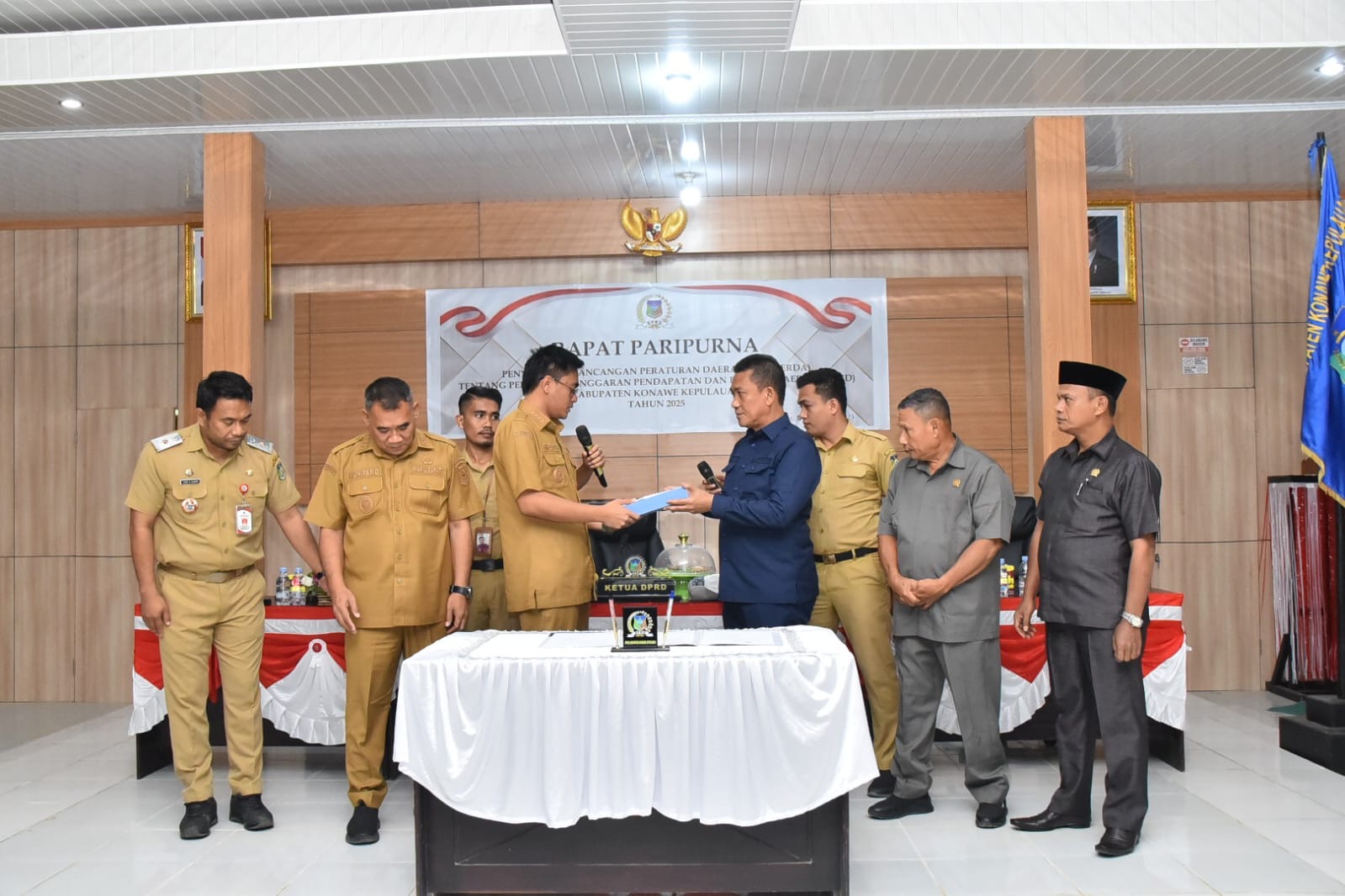 Rapat paripurna dipimpin langsung oleh Ketua DPRD Konkep, Ishak, SE didampingi Wakil Ketua I, Ir. Abdul Halim, dan Wakil Ketua II, Sahidin, SE, yang dihadiri oleh Bupati dan Wakil Bupati Konkep, Rifki Saifullah Razak, ST dan Muhamad Farid, SE, Sekertaris Daerah, Ir. H. Cecep Trisnajayadi, MM, para kepala OPD, Kabag, dan Camat.